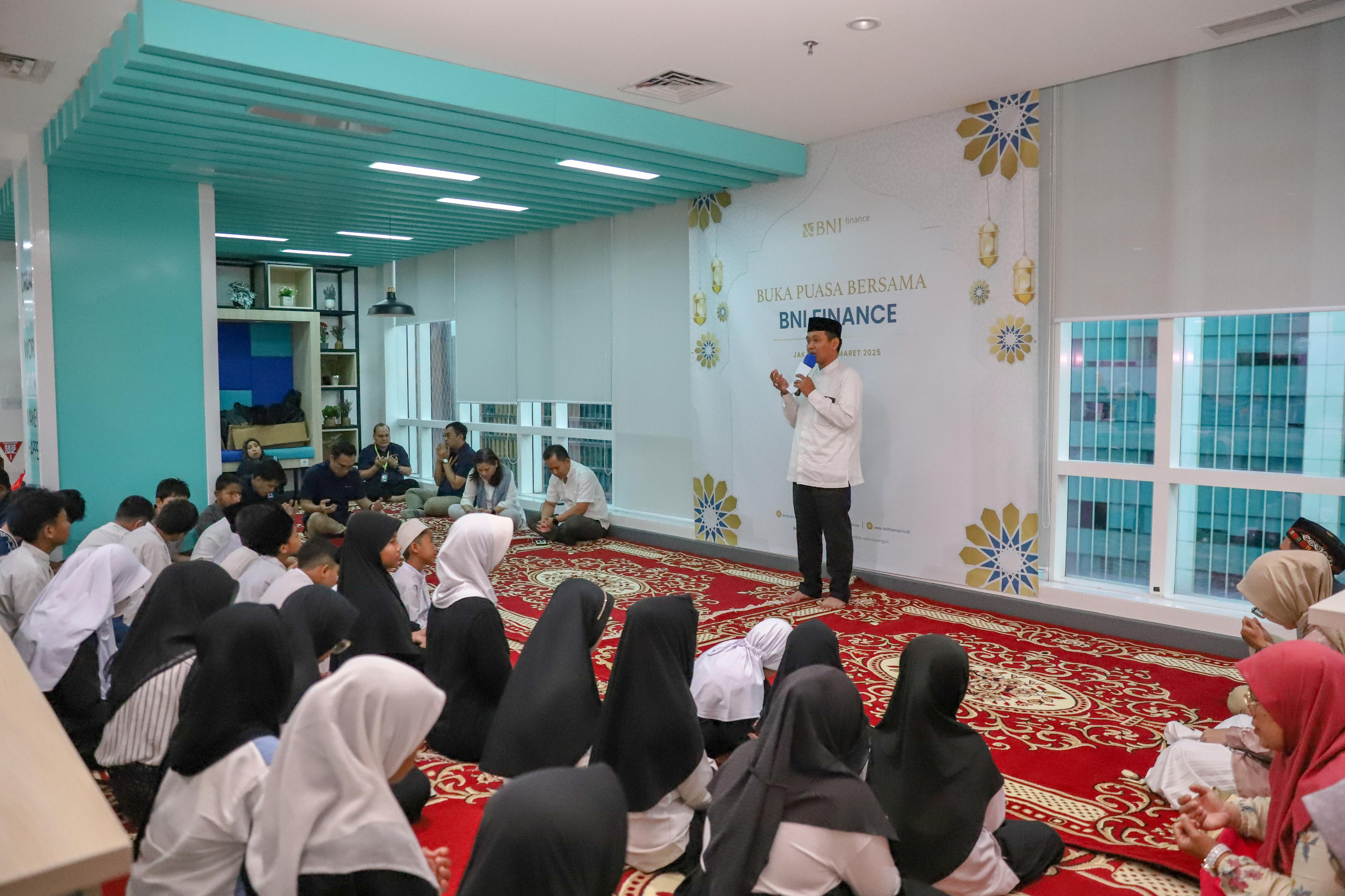 Menyemarakkan bulan suci Ramadhan 1446 H, BNI finance menggelar kegiatan buka puasa bersama anak yatim dan dhuafa. Dalam acara tersebut, BNI finance memberikan santunan dan bingkisan kepada anak yatim dari Yayasan Masjid Nurul Hikmah. Acara yang berlangsung pada Selasa, 25 Maret 2025 di kantor pusat BNI finance, Graha Binakarsa, Karet Kuningan Jakarta Selatan ini merupakan rangkaian program Corporate Social Responsibility (CSR) perusahaan.
