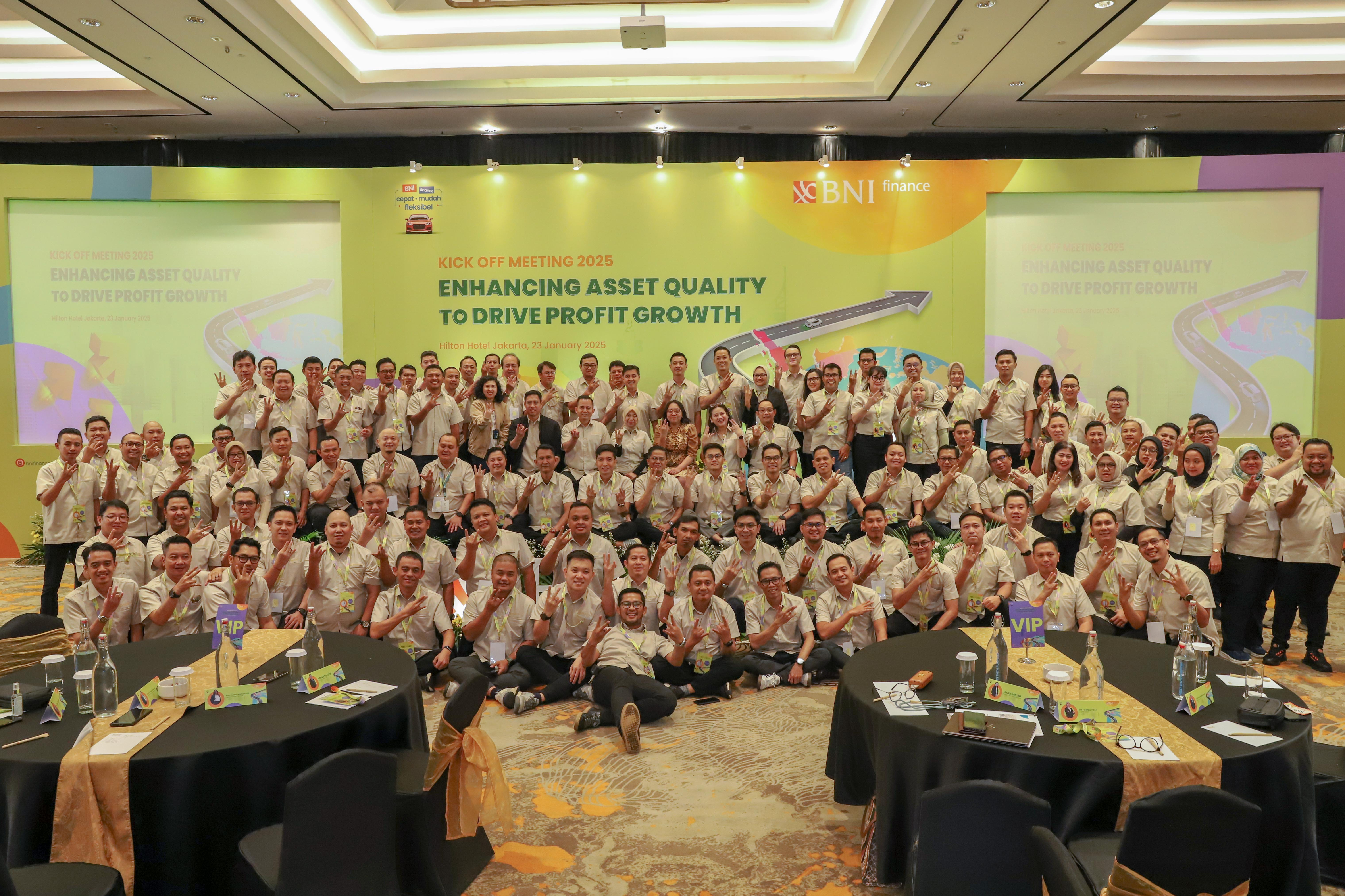 Dalam rangka menyelaraskan rencana kerja tahun 2025 ke seluruh lini untuk mencapai kinerja yang optimal sesuai harapan pemegang saham, BNI finance menyelenggarakan Kick Off Meeting 2025 dengan tema GǣEnhancing Asset Quality to Drive Profit GrowthGǥ.